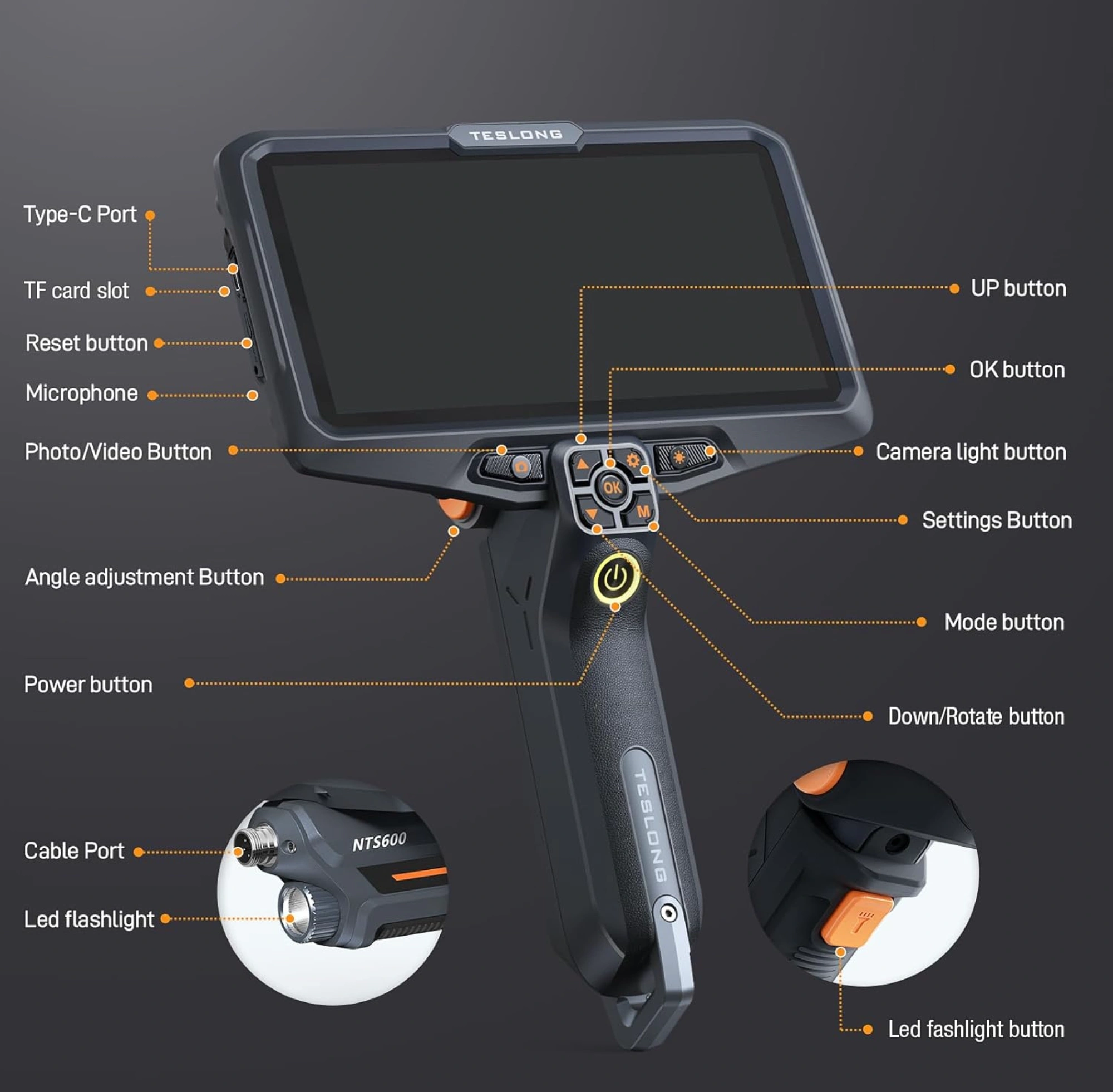 Teslong NTS600 Çift Lensli 360 Derece Dönüşlü Muayene Kamerası 8.5mm - 6 Inc - 5m Kablo