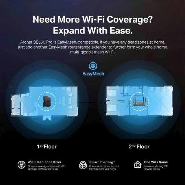 • OneMesh Uyumlu Yönlendirici - TP-Link OneMesh WiFi Genişleticilerle çalışırken sorunsuz bir WiFi oluşturun