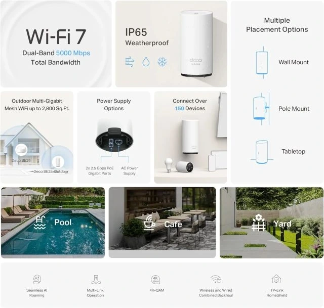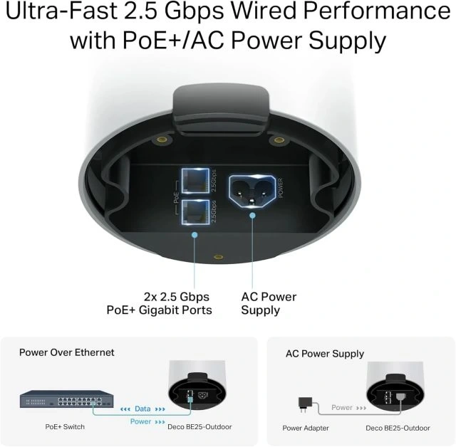 2 x 2,5G WAN/LAN Portu ve Kablolu Bağlantı - Her Deco ünitesi, yüksek performanslı kablolu cihazlar ve çok gigabaytlı internet hizmetleri için yüksek hızlı bağlantı sunan iki adet 2,5 Gbps WAN/LAN portu ile donatılmıştır. § TP-Link'in kendi geliştirdiği teknoloji sayesinde Deco BE25, eş zamanlı kablosuz ve kablolu bağlantı desteğinin yanı sıra Wi-Fi 7 MLO ile birleşerek daha geniş ve daha kararlı bağlantılar sunar.