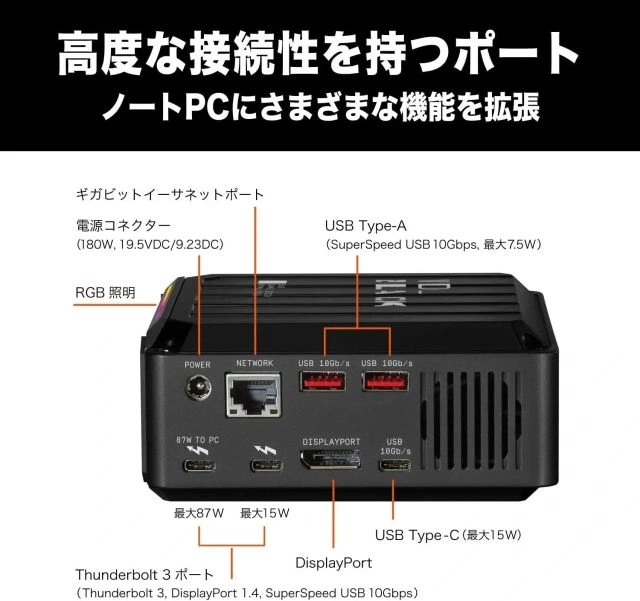 Her zaman oyunda kalmak için Thunderbolt 3 uyumlu dizüstü bilgisayarınız için birlikte verilen kabloyla 87 watt'a kadar doğrudan geçiş şarjı