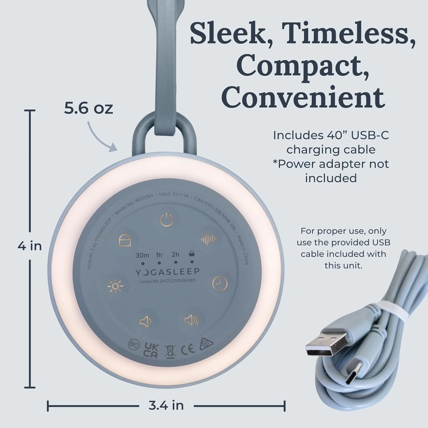 Yogasleep Hushh 2 Taşınabilir Ses Makinesi - Aydınlatmalı Düğmeler - Ay Işığı Mavisi